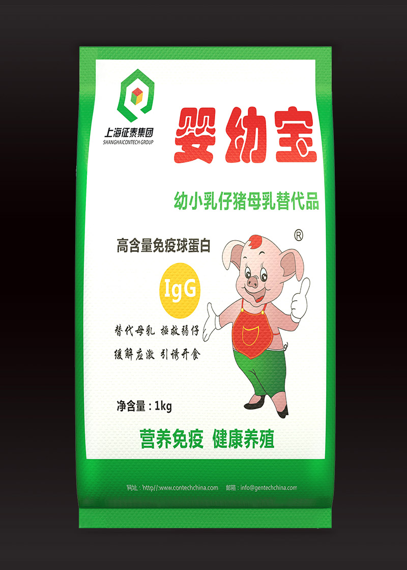 征泰集團經過多年研究,結合哺乳仔豬的腸胃和消化特性及合成酶的能力,針對性的推出了一款幼小乳仔豬母乳替代品--嬰幼寶。